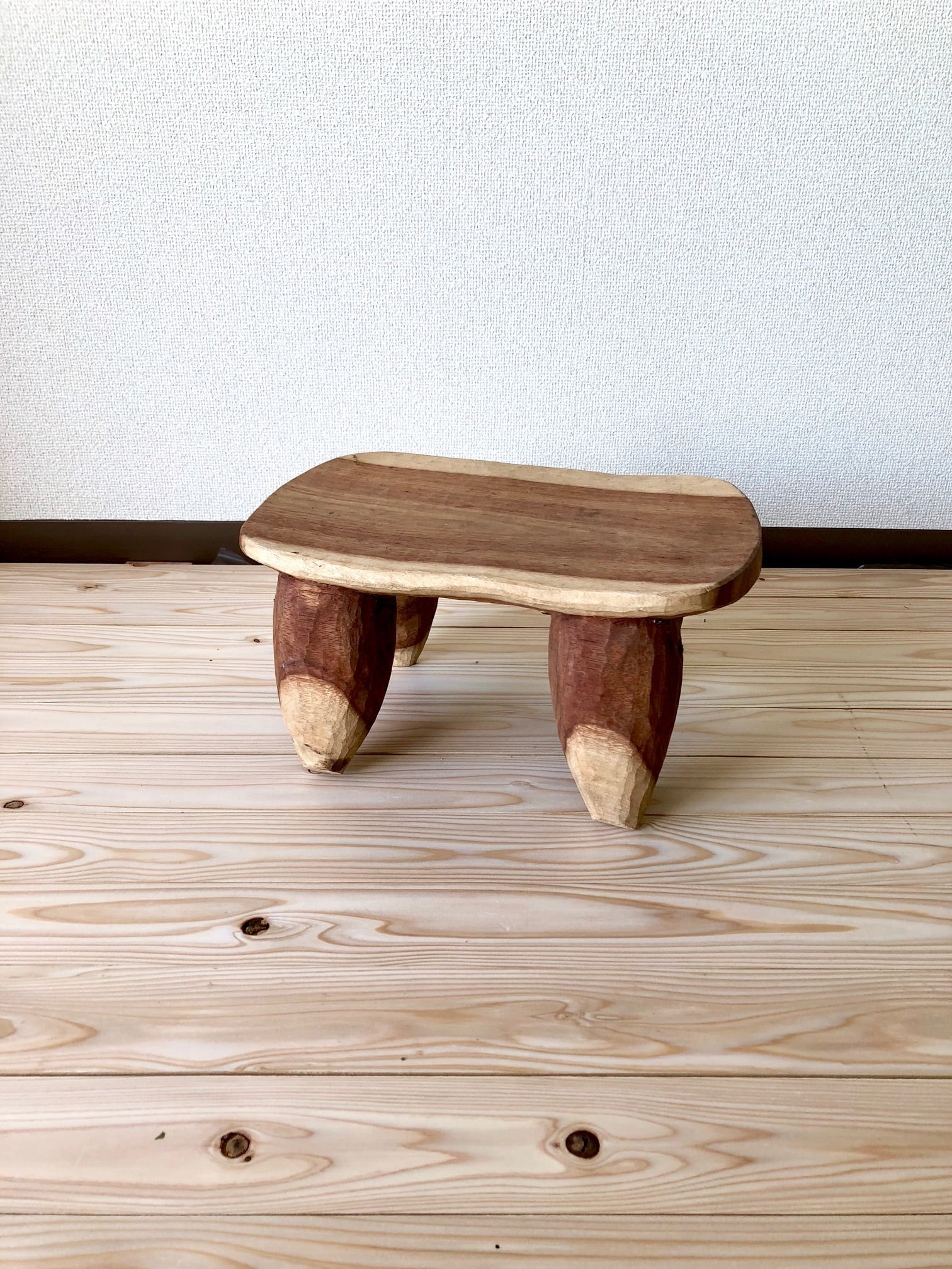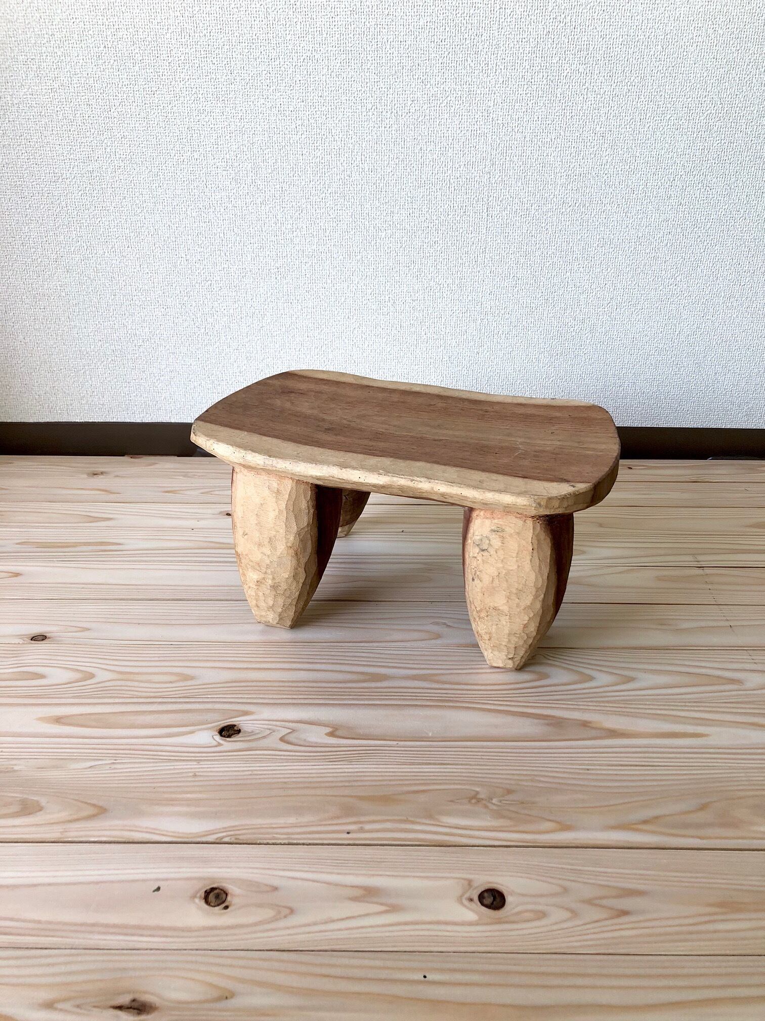 チークから削り出されたスツールは存在感あります。